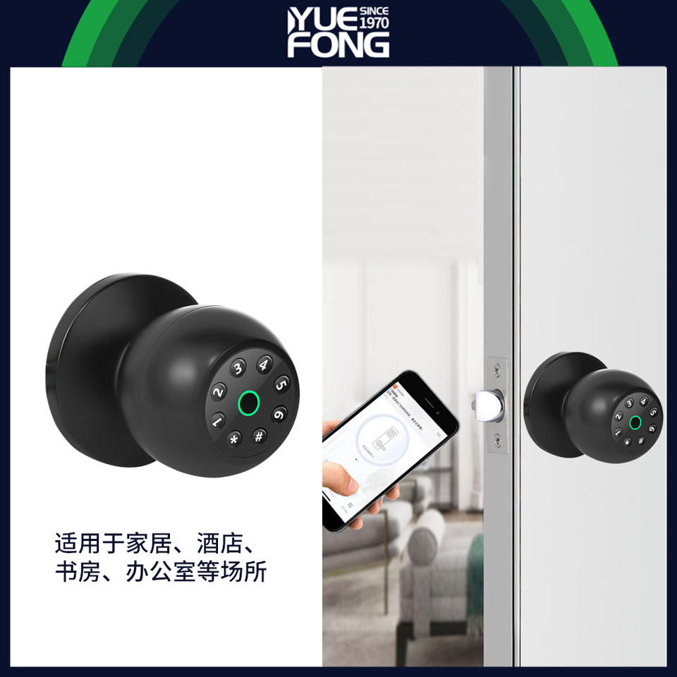 กุญแจล็อคประตูอัจฉริยะ Yuefeng Maishi แบบลูกบิด ปลดล็อคด้วยรหัสผ่าน สำหรับประตูไม้ รุ่น DFQ80