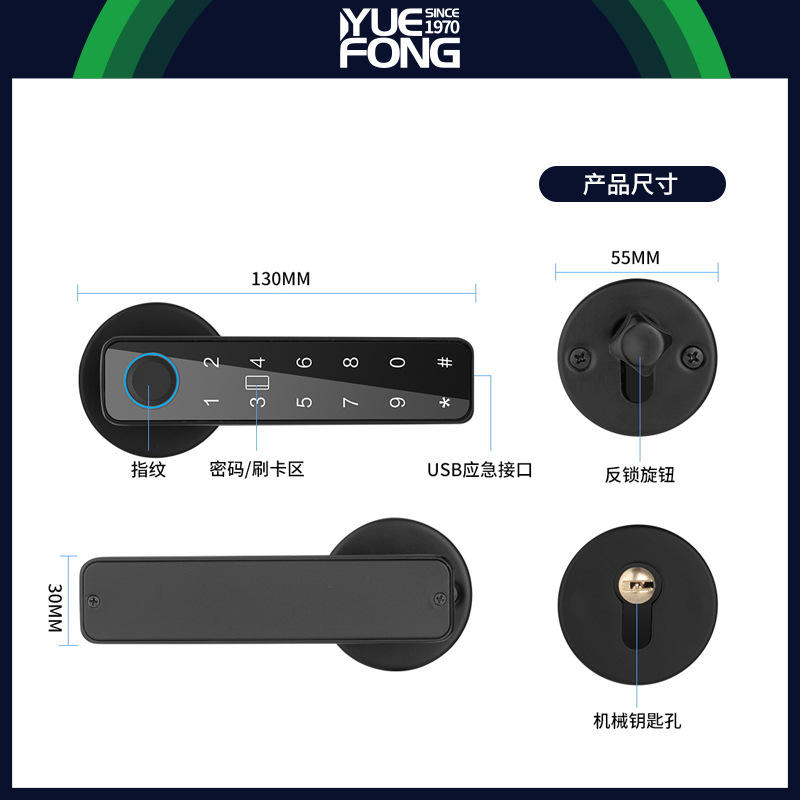 ยูเฟิง ไมชิสมาร์ทดอร์ล็อค ระบบปลดล็อคด้วยลายนิ้วมือและรหัสผ่าน สำหรับใช้ภายในอาคาร รุ่น DF20 สีดำ