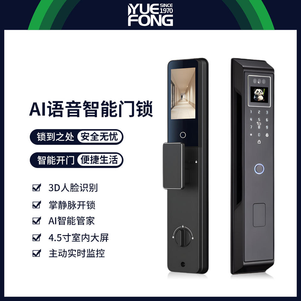 กุญแจล็อคประตูอัจฉริยะ Yuefeng รุ่น DXA100 ระบบจดจำใบหน้า รองรับ Wi-Fi ใช้พลังงานแบตเตอรี่ พร้อมระบบล็อคภาพ 3 มิติ ปลดล็อคด้วยรหัสผ่านและลายเส้นฝ่ามือ