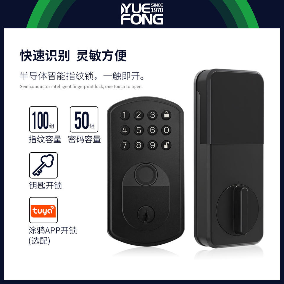 ยูเฟิงสมาร์ทล็อคประตูลายนิ้วมือรหัสผ่านอลูมิเนียมอัลลอยด์ล็อคอิเล็กทรอนิกส์สำหรับการรักษาความปลอดภัยภายในบ้านพร้อมกุญแจสำรองปลดล็อค