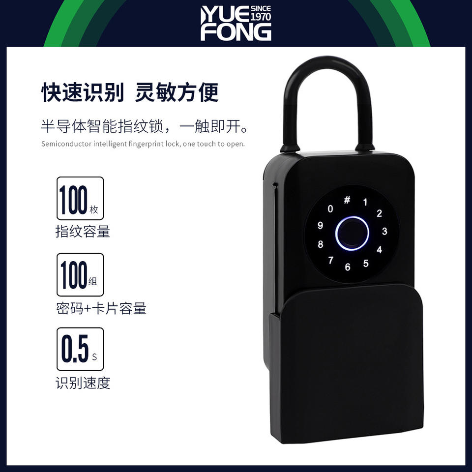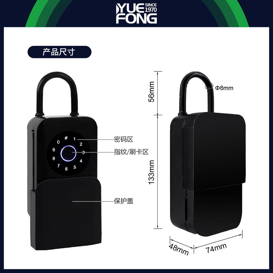 กล่องกุญแจอัจฉริยะ Yuefeng รุ่น DSG81 ระบบล็อคด้วยลายนิ้วมือ รหัสผ่าน และบัตร IC วัสดุอลูมิเนียมอัลลอย สีดำ สำหรับตกแต่งสำนักงาน