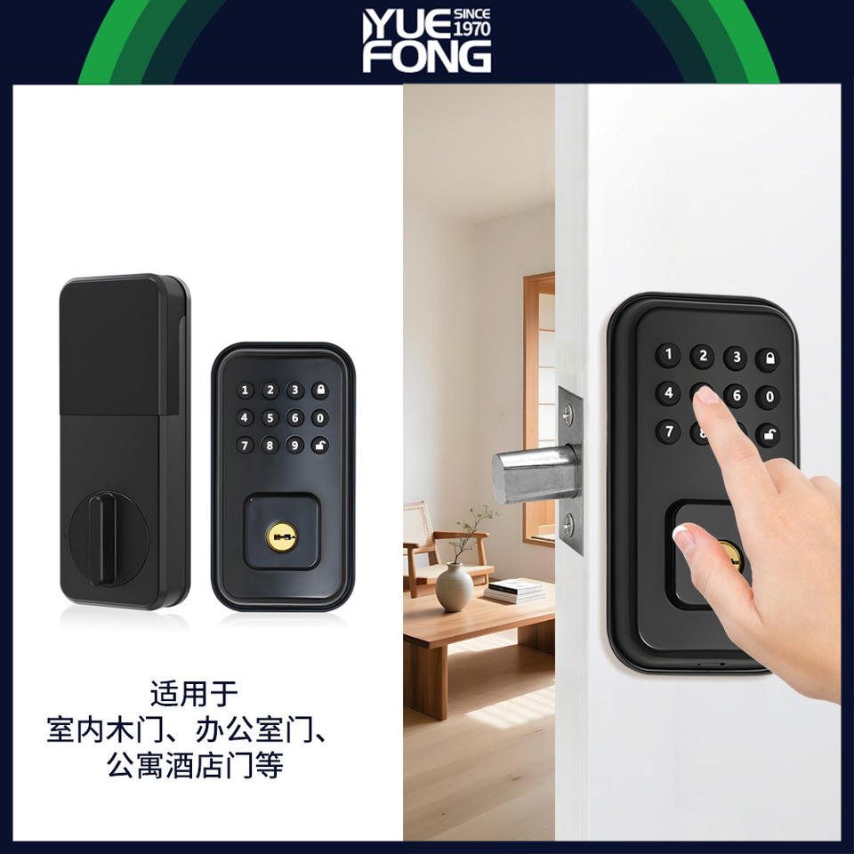 ยูเฟิงสมาร์ทล็อค ล็อคประตูอิเล็กทรอนิกส์ โลหะผสมสังกะสี สีดำ รหัสผ่าน ปลดล็อคประตูไม้ DJJD1