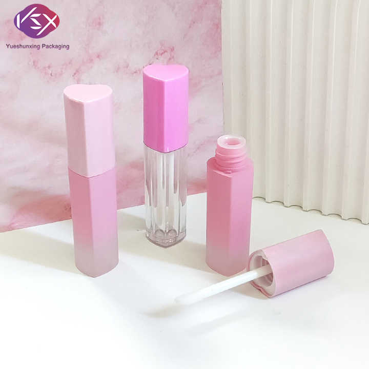 Yueshunxing บรรจุภัณฑ์พลาสติกสีชมพูรูปหัวใจใหม่ขนาด4มล. ภาชนะลิปกลอสสีทองกุหลาบหลอดลิปกลอสขายตามสั่ง