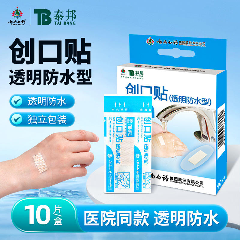ยูนนาน ไป๋เหยา ไท่ปัง พลาสเตอร์ใส บรรจุ 10 ชิ้น กล่องกันน้ำ ระบายอากาศได้ ใช้สำหรับปิดแผลที่บ้านและในห้องน้ำ