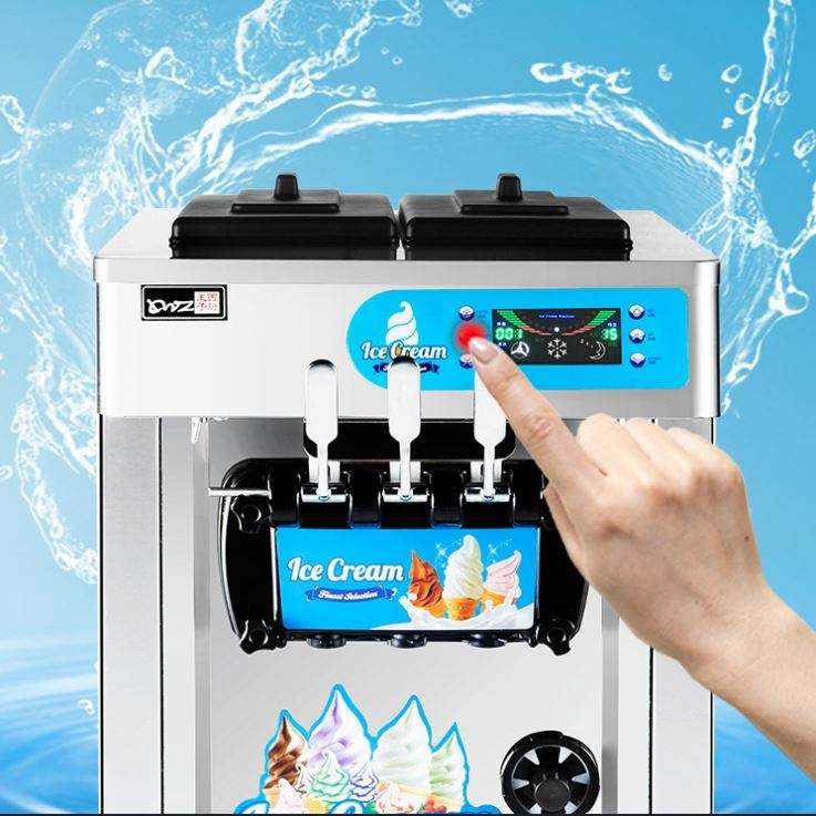 เครื่องทำไอศกรีม Yunqingtech 3 รสชาติ สำหรับธุรกิจ ทำไอศกรีมซอฟต์เสิร์ฟ สเตนเลสสตีล