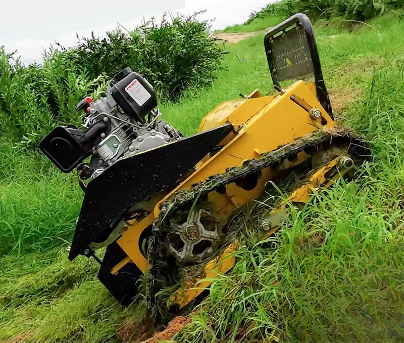 ยูนชิงเทค เครื่องตัดหญ้าแบบสายพานยางสำหรับทุกสภาพพื้นผิว ควบคุมระยะไกล ไม่กลัวก้อนหิน