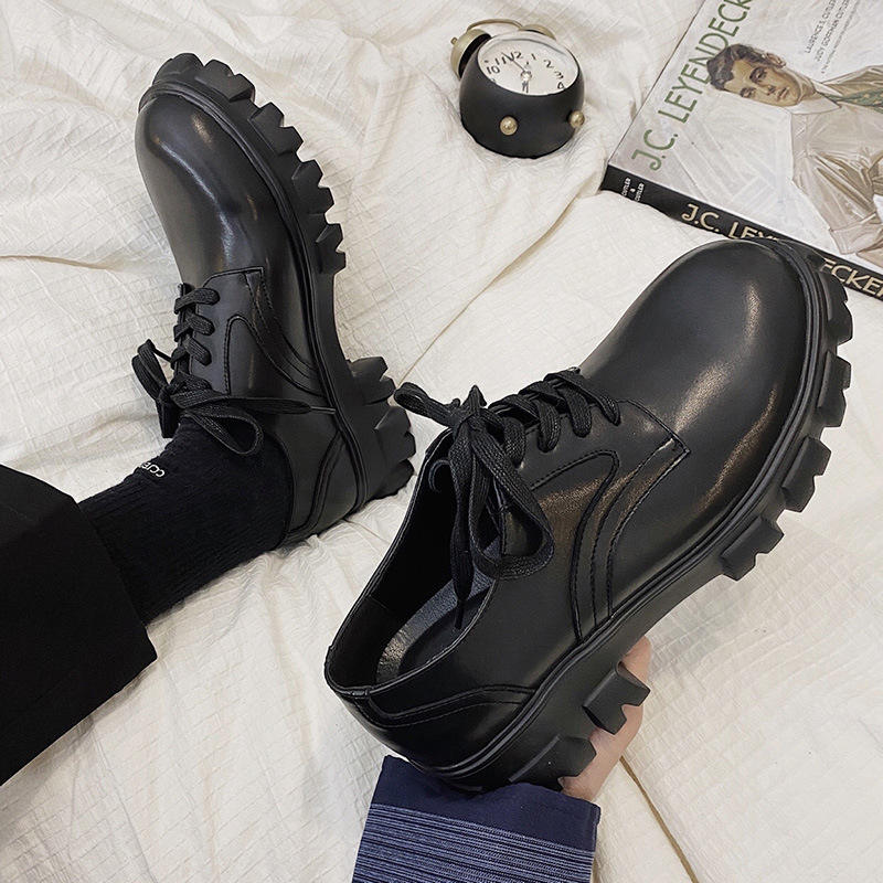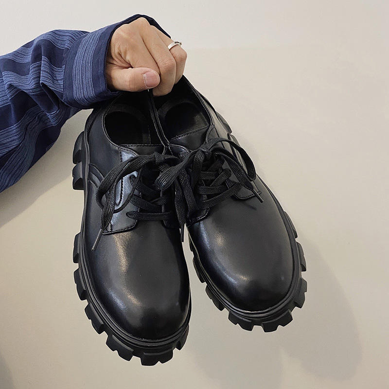 รองเท้าโลฟเฟอร์หนังสไตล์เรโทรสำหรับผู้ชายสไตล์อังกฤษ ยุคใหม่ ทันสมัย สไตล์เกาหลี ลำลองและเป็นทางการ พื้นหนา แบบผูกเชือก