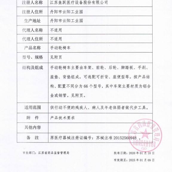 เลขที่อนุมัติยา (เครื่องมือแพทย์):ใบรับรองการจดทะเบียนเครื่องมือแพทย์เจียงซู 20152190948