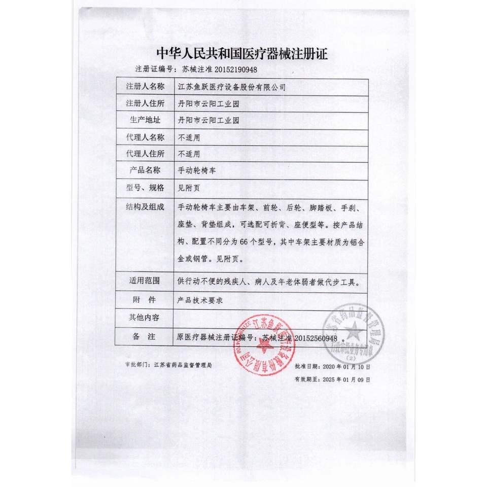 เลขที่อนุมัติยา (เครื่องมือแพทย์):ใบรับรองการจดทะเบียนอุปกรณ์การแพทย์เจียงซู 20152190948