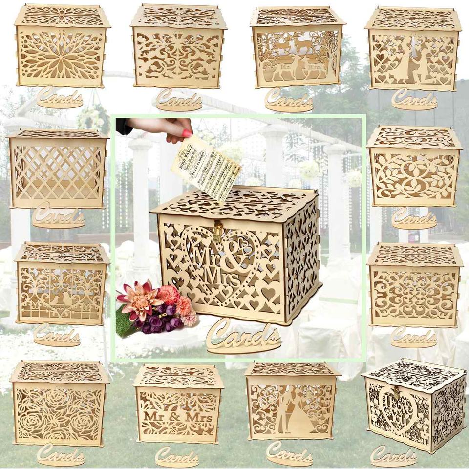 Ywbeyond Mr. & Mrs. ไม้ตกแต่งงานแต่งงานการ์ดเชิญกล่องล็อคการ์ดป้ายไม้ของขวัญกล่องเงินสำหรับแผนกต้อนรับ