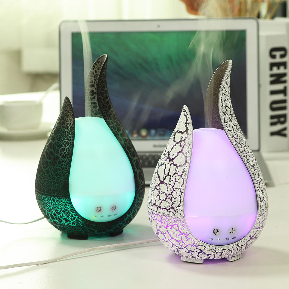 เครื่องกระจายกลิ่นหอมแบบอัลตราโซนิก Yx 261 รุ่น Cracked พร้อมฟังก์ชั่นเพิ่มความชื้นในอากาศขนาดเล็ก ใช้ในบ้าน ถังน้ำ 0.5 ลิตร ไฟ LED ตั้งเวลาได้ 2 และ 8 ชั่วโมง