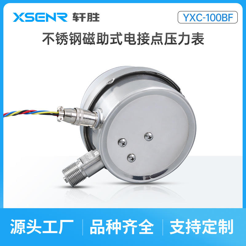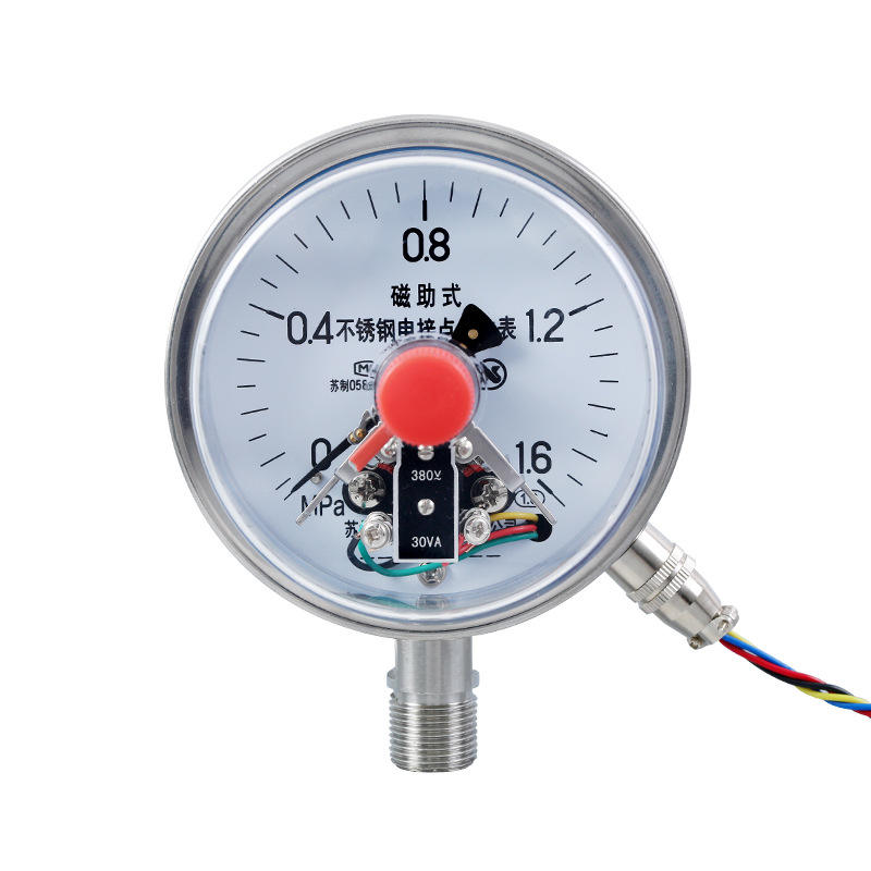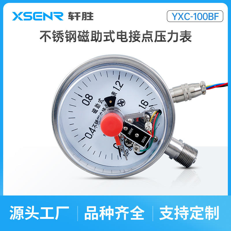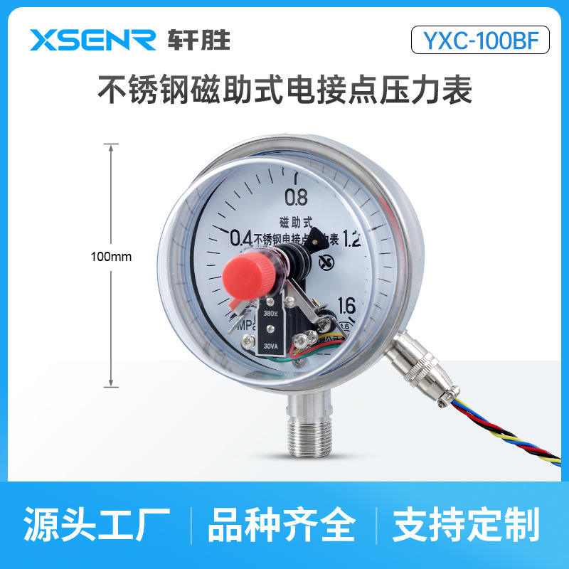 เกจวัดแรงดันไฟฟ้าสแตนเลส Yxc 100Bf ขนาด 100 มม. ความแม่นยำ 1.6 พร้อมระบบเชื่อมต่อเกลียวแบบแม่เหล็ก