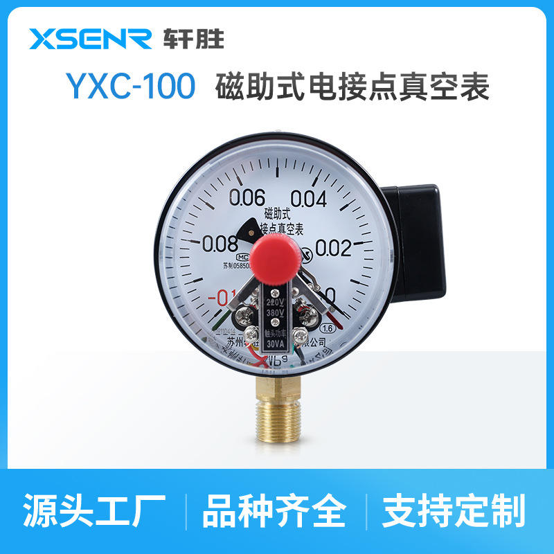 เกจวัดแรงดันสุญญากาศ Yxc100 ขนาด 100 มม. -0.1 ถึง 0 เมกะปาสคาล แบบหน้าสัมผัสแม่เหล็ก ผลิตที่ซูโจว