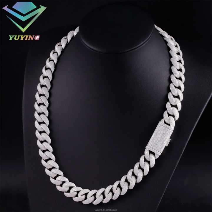 Yy Hot-sale 17 mm Curved Diamond Cuban Link Chian Vvs Moissanite Pass Diamond Tester 925 Silver Fine Jewelry Necklaces for Men