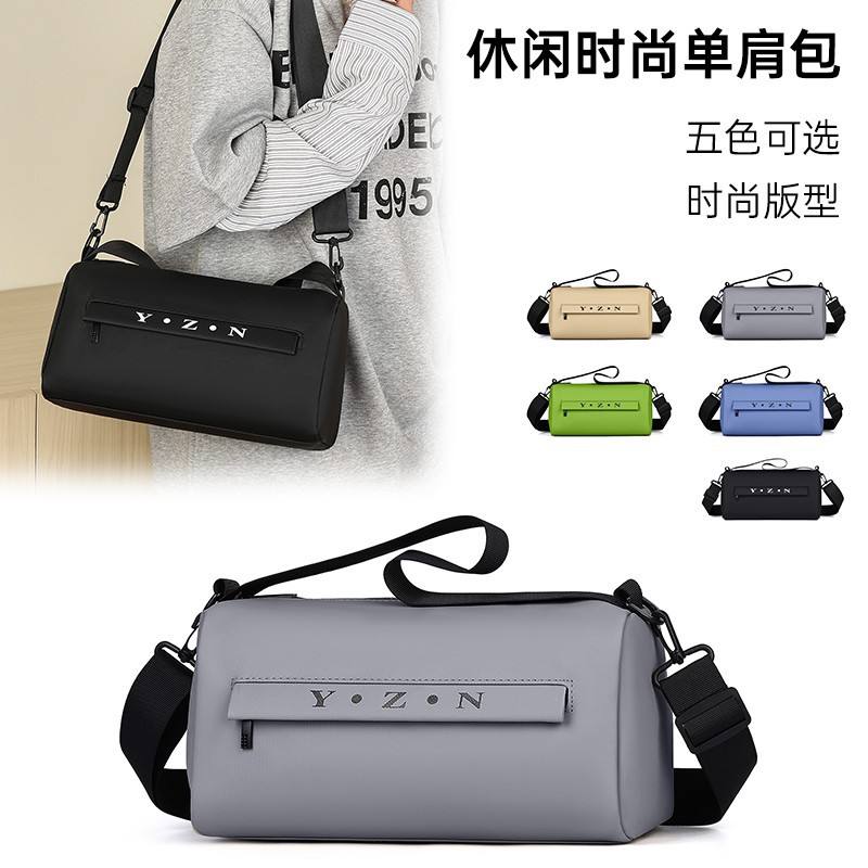 กระเป๋าสะพายทรงกระบอก Yzn สีเขียว ขนาดกลาง นุ่ม ทนทานต่อการสึกหรอ ปิดด้วยซิป กีฬากลางแจ้ง ใช้ได้ทุกวัน