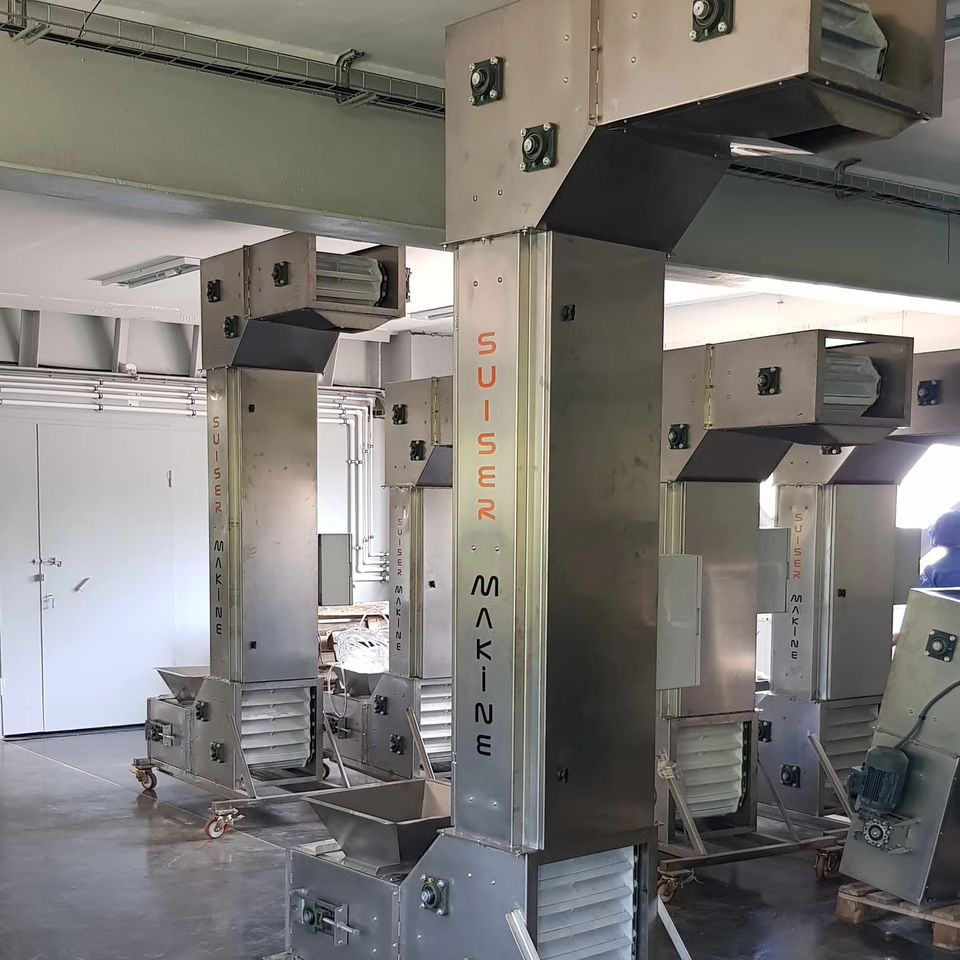 ลิฟต์ Z สำหรับโรงงานผลิตแป้งและโรงกลั่นไวน์ โครงสร้างสแตนเลส ยี่ห้อ SUISER MAKINE