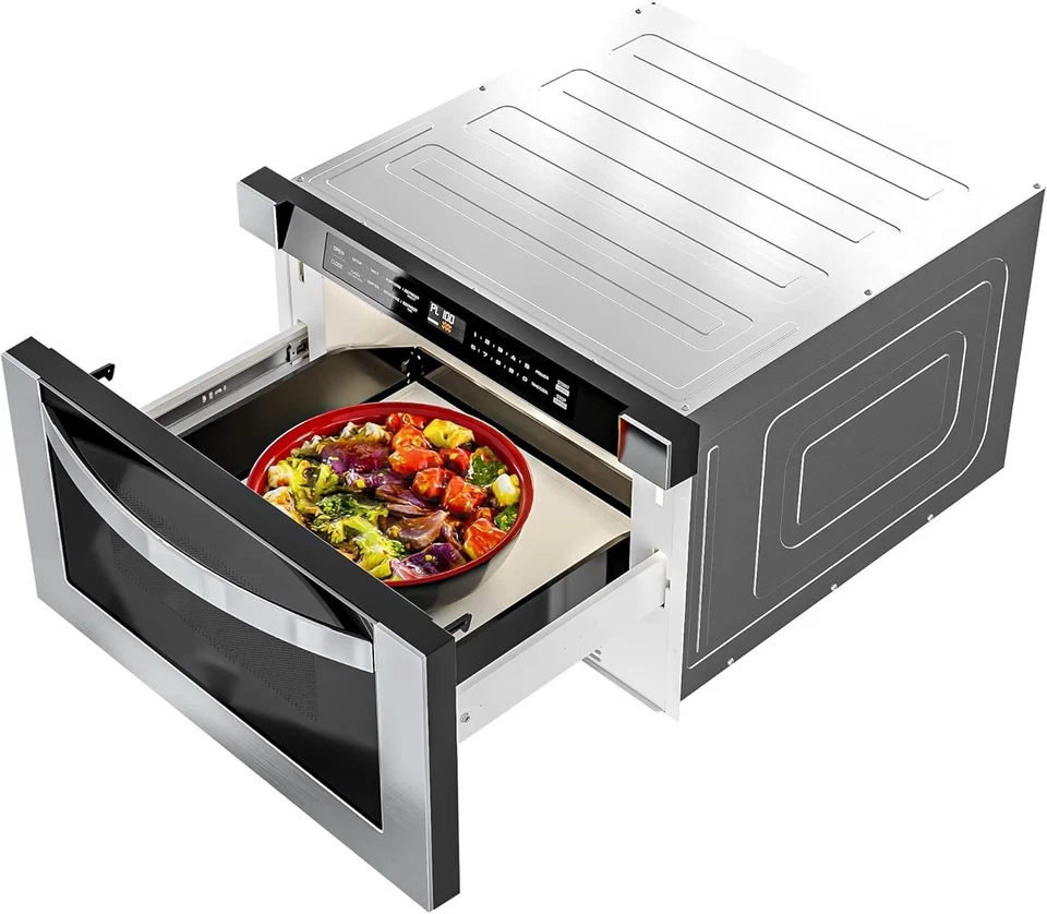 ชุดครัว 24 ชิ้น 1.2 คิว ฟุต สแตนเลส สตีล ไมโครเวฟ แบบมีลิ้นชัก สีเงิน