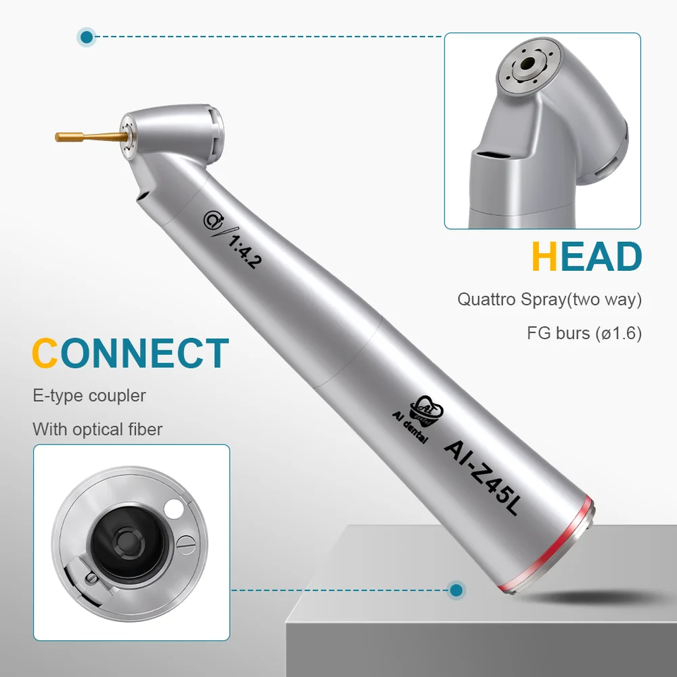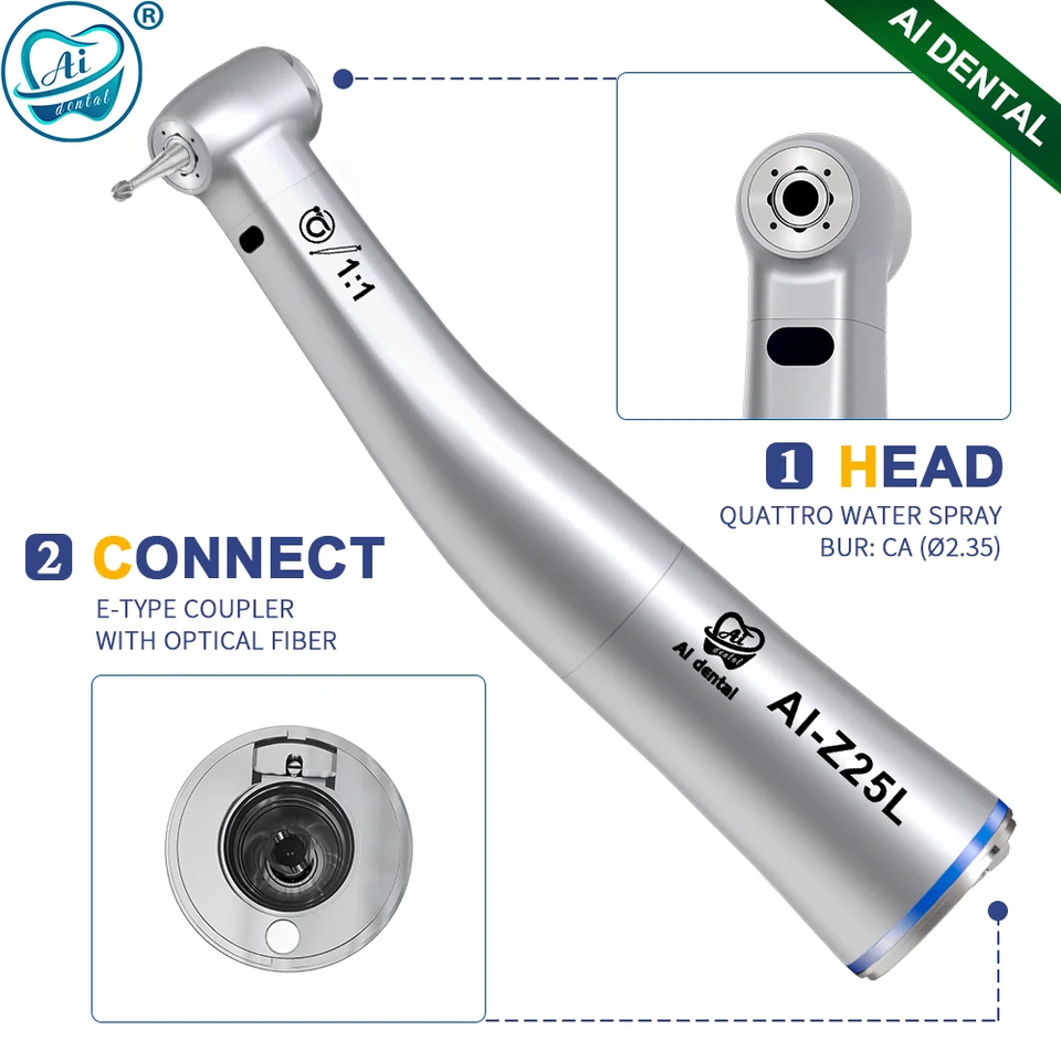 หัวกรอฟันสแตนเลสซีรีส์ Z สำหรับมอเตอร์ไฟฟ้า LED ความเร็วต่ำ พร้อมใยแก้วนำแสงและระบบพ่นน้ำแบบควอตโตร