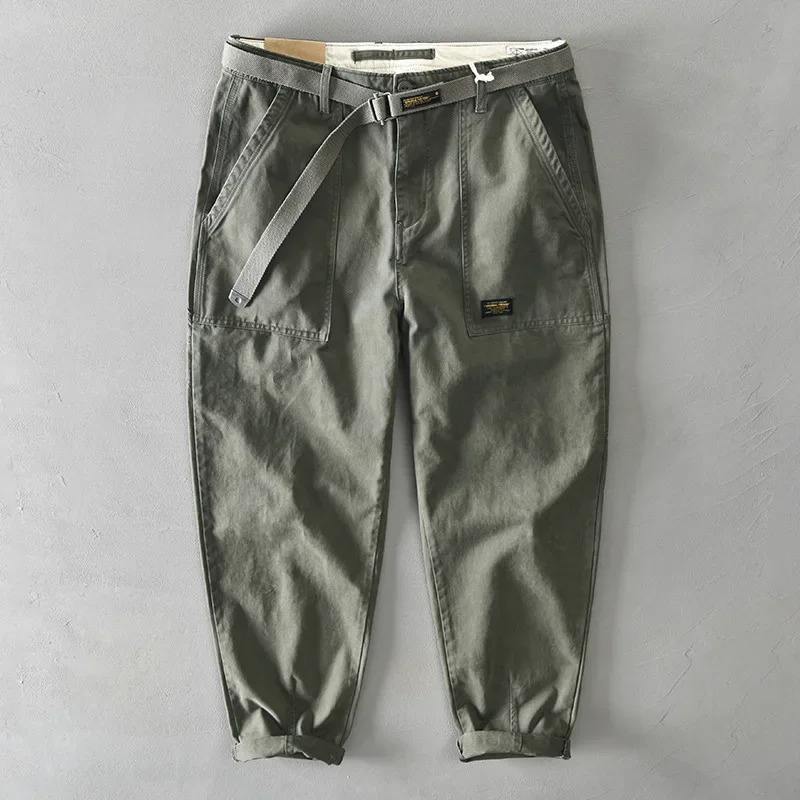 กางเกงคาร์โก้ผู้ชาย Z329 รุ่นฤดูใบไม้ร่วง/ฤดูหนาว ผ้าฝ้ายสีพื้น หลายกระเป๋า สไตล์ญี่ปุ่น ลำลอง เอวยางยืด ล้างสีแบบ Acid Wash ทรงหลวม