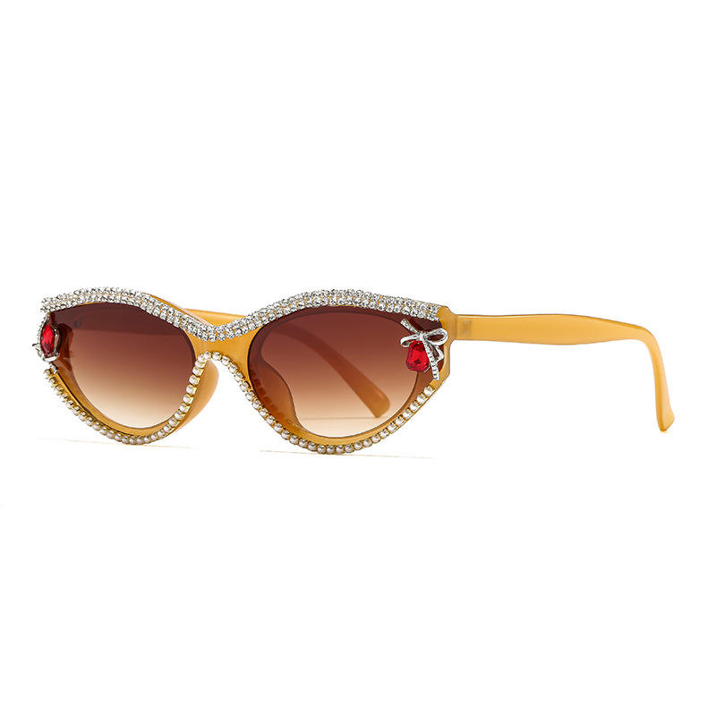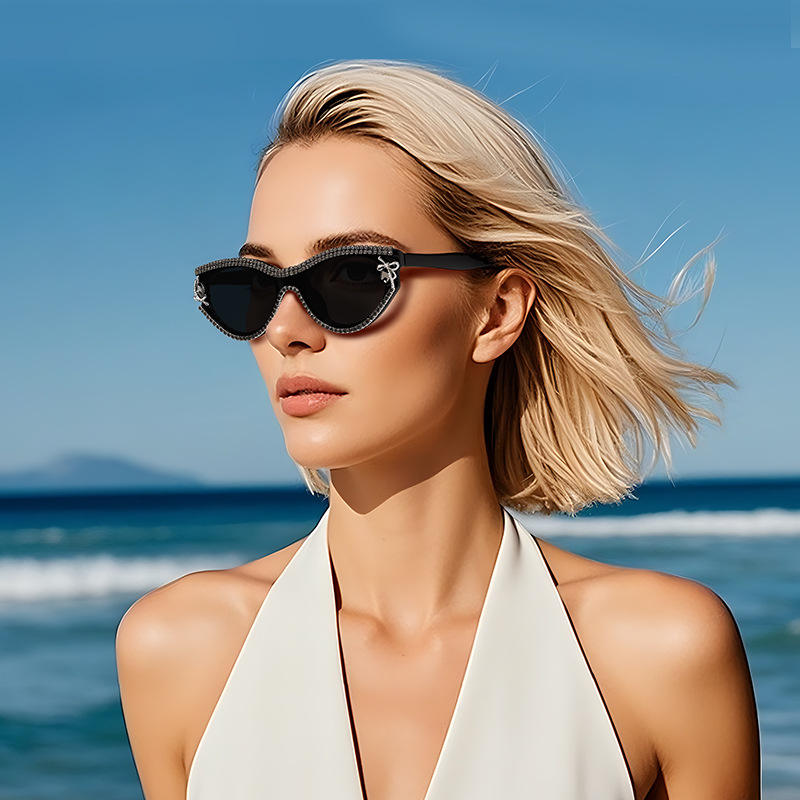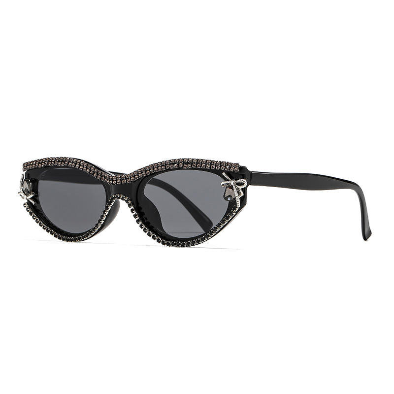 แว่นกันแดดทรงแคทอายสำหรับผู้หญิง รุ่น Z6241 กรอบพลาสติกสีดำ ประดับด้วยคริสตัลรูปผีเสื้อ ป้องกันรังสียูวี 400 ประเภท 3