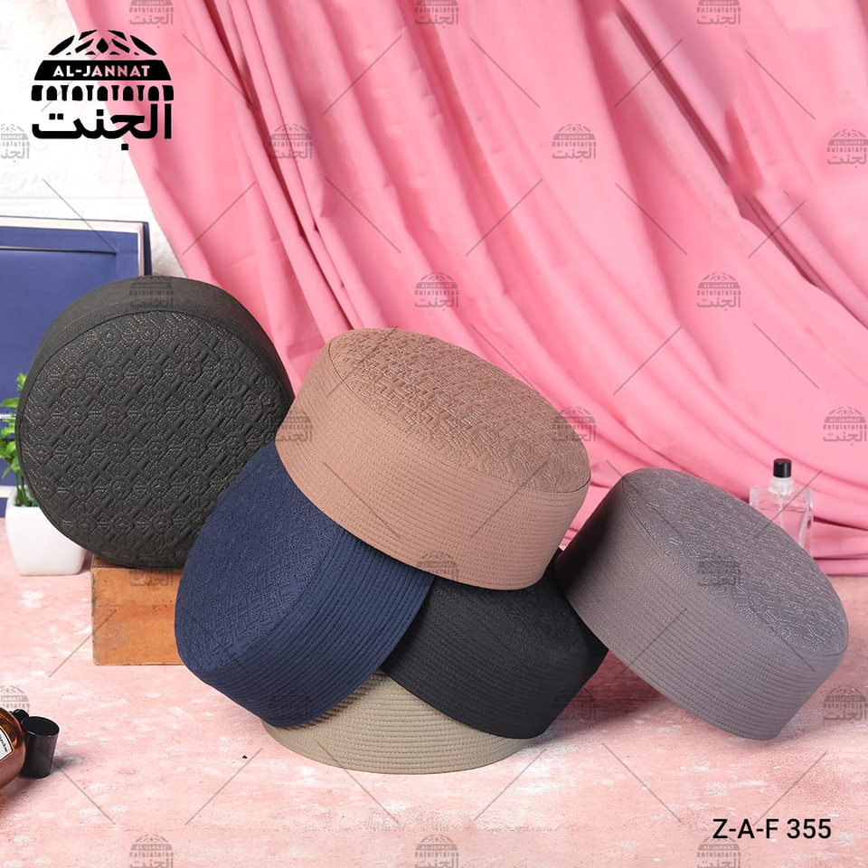 ZAF 355หมวกสวดมนต์ปักลายสีพื้นปรับระดับได้แบบพรีเมียมพร้อมผ้าชุดสูทระบายอากาศได้สำหรับมุสลิมมุสลิม