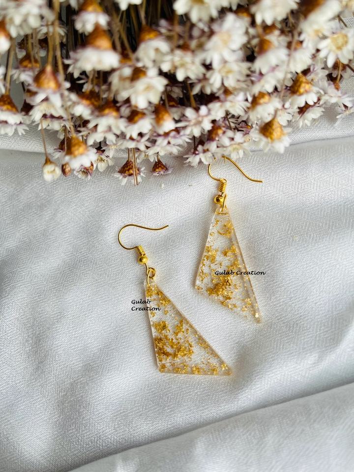 Zam zimpex ทำด้วยมือเครื่องประดับต่างหูเรซินใสสำหรับผู้หญิงสไตล์น่ารักด้วยเกล็ดทองในราคาที่แข่งขันได้
