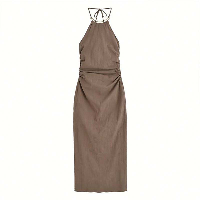 Zatrhmbm ชุดผู้หญิงฤดูใบไม้ร่วง2025ใหม่เครื่องประดับแฟชั่นใหม่ชุดเดรสมิดิลำลองย้อนยุคลำลองแขนกุด