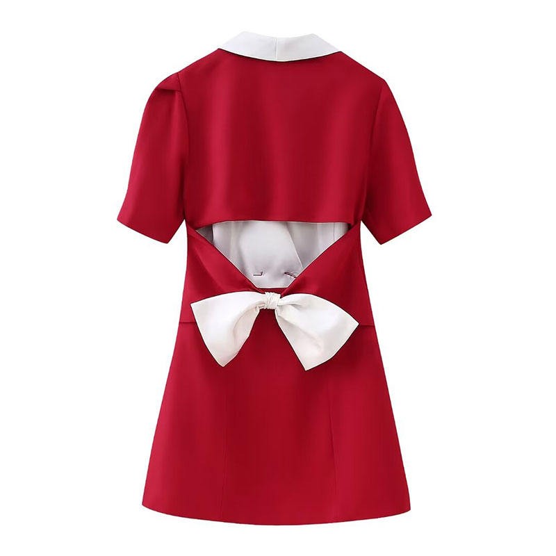 ชุดเดรสสั้นแขนสั้นสไตล์สูทประดับโบว์แฟชั่นใหม่ปี 2024 สำหรับผู้หญิงจาก ZATRHMBM ดีไซน์แบบกระดุมสองแถวสไตล์เรโทร