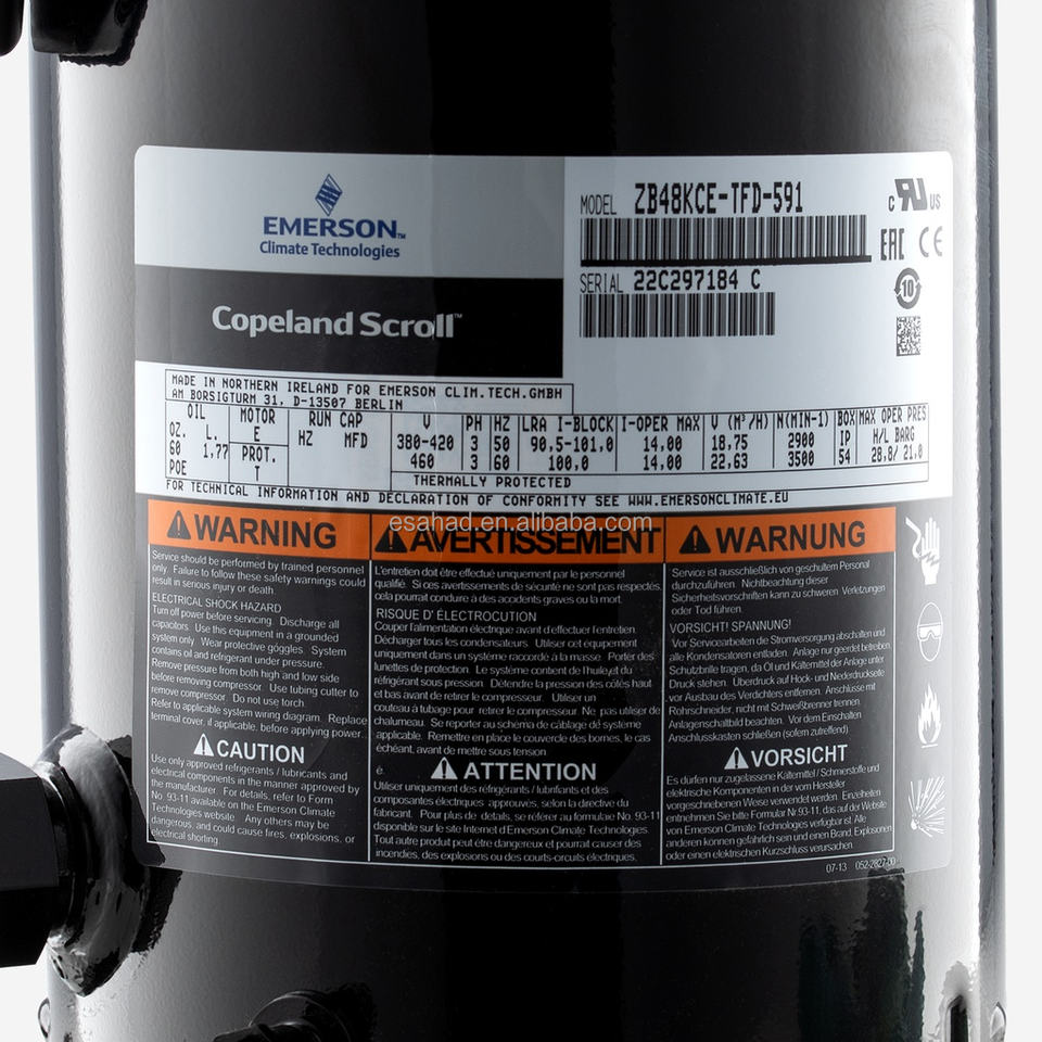 ZB48KQ-TFD-558 ZB48KQE-TF7-524 ZB48KQE-TF5-551 High Efficiency Copeland Scroll Compressor