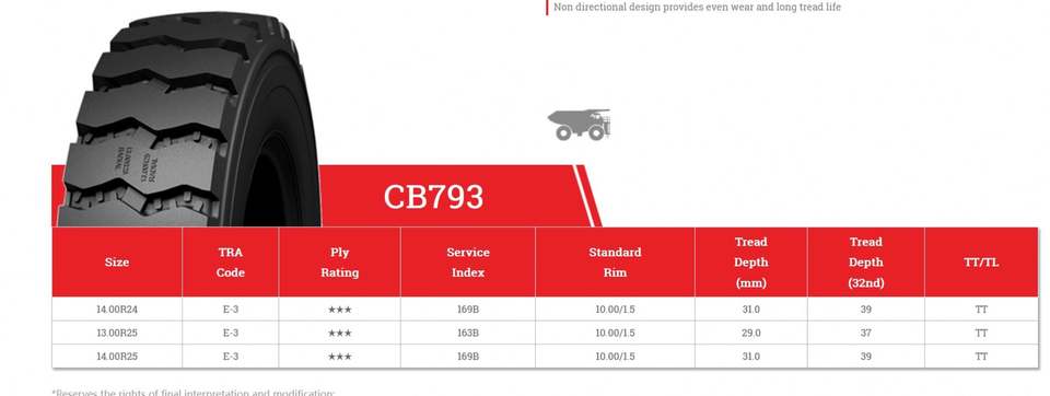 หมายเลขรุ่น:14.00R25 CB793