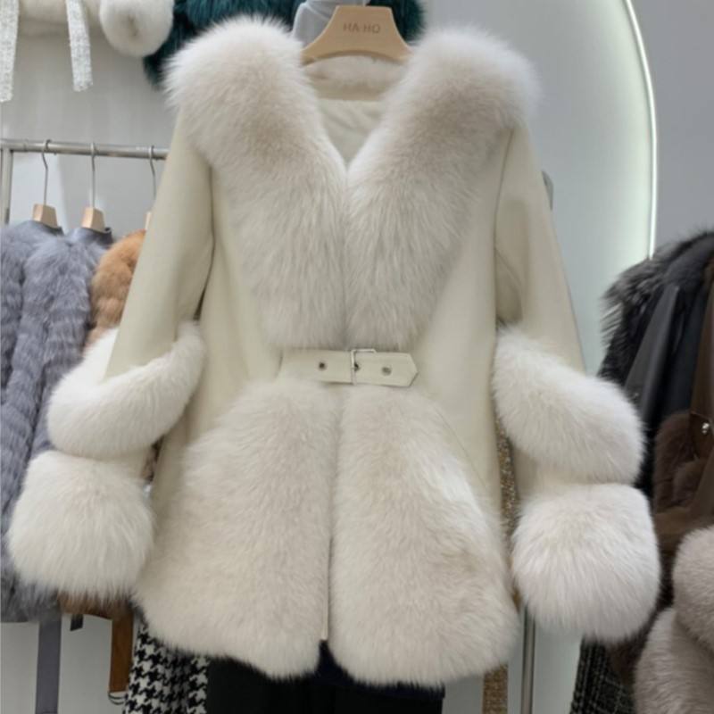 Zdfurs เสื้อโค้ทขนสุนัขจิ้งจอกสำหรับผู้หญิง, เสื้อโค้ทขนแกะยาวปานกลาง2022ใหม่เสื้อโค้ทหนังแกะทั้งหนังแฟชั่นฤดูหนาวกระชับสัดส่วน