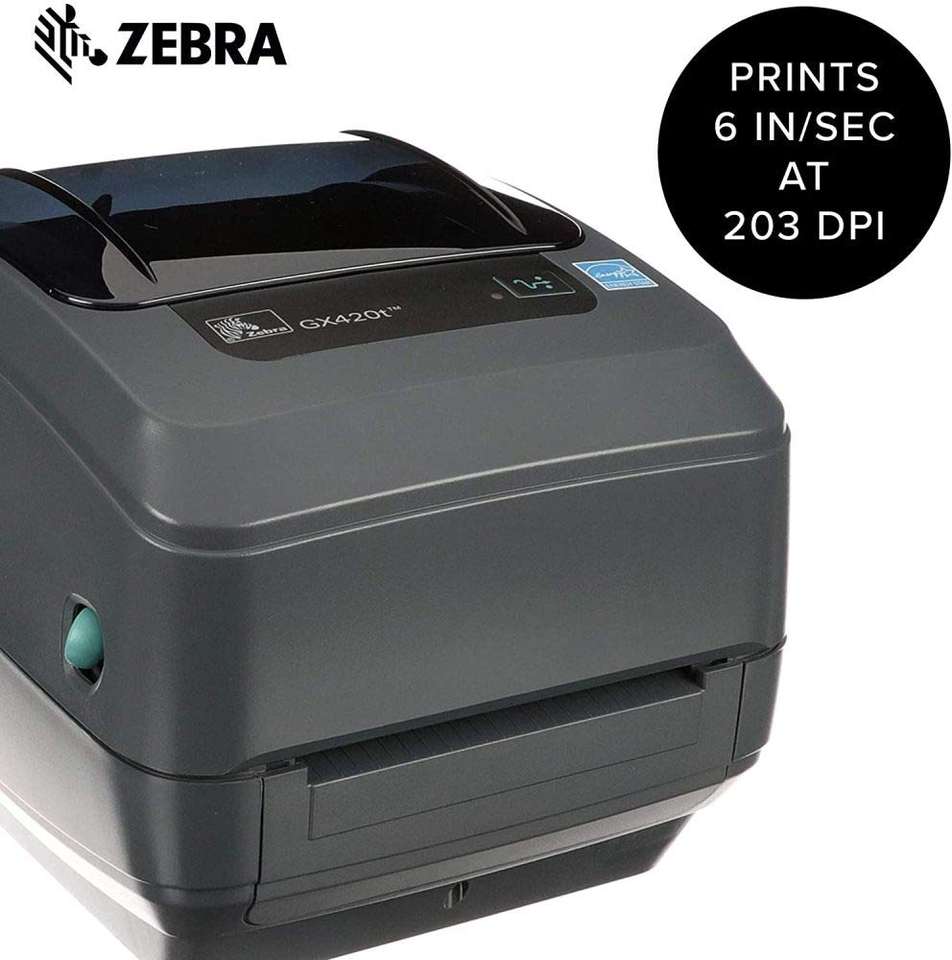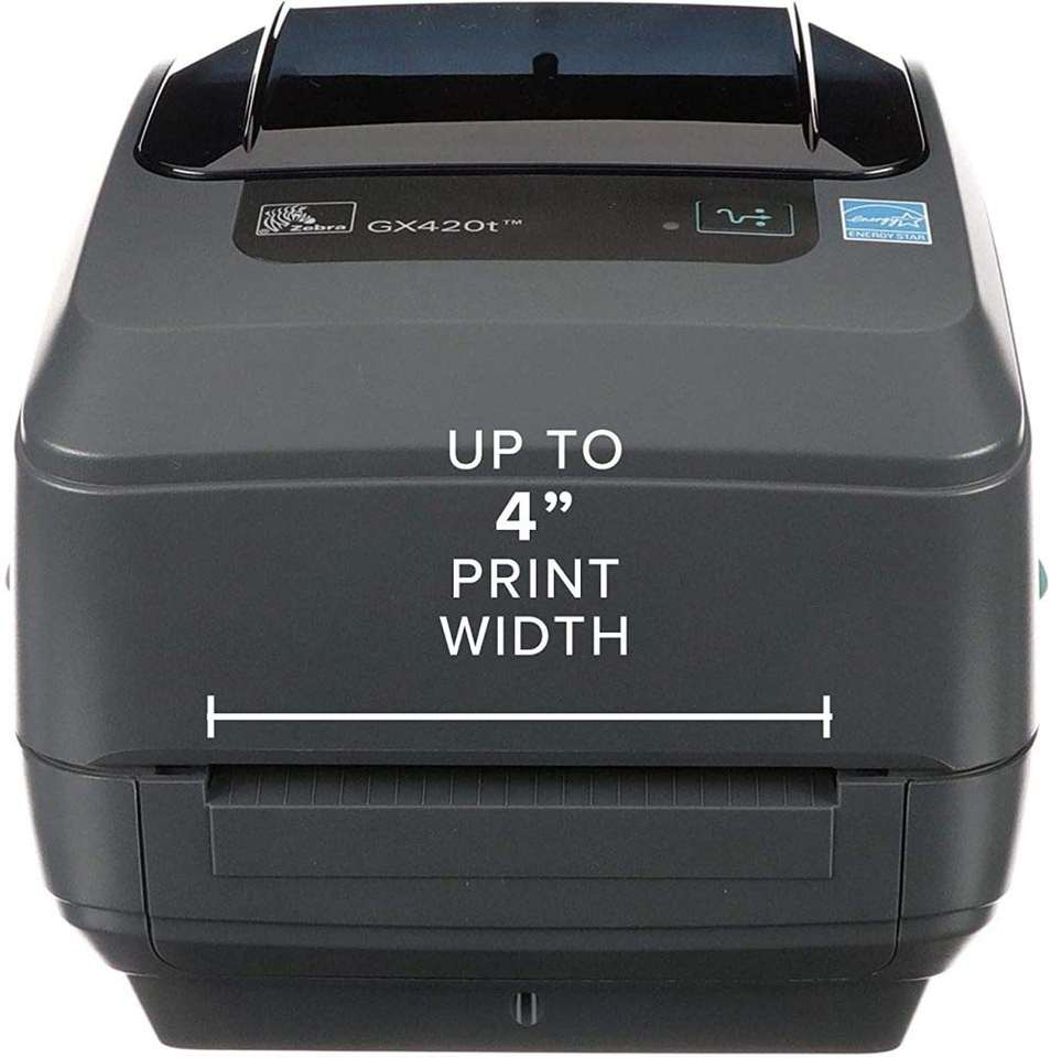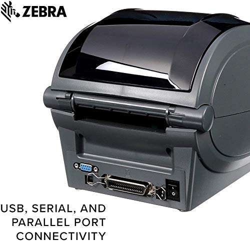 เครื่องพิมพ์แบบถ่ายโอนความร้อน ZEBRA GX420t สำหรับตั้งโต๊ะ รับประกัน 1 ปี ผลิตในจีน ความกว้างการพิมพ์ 4 นิ้ว เชื่อมต่อผ่านพอร์ต USB, Serial และ Parallel