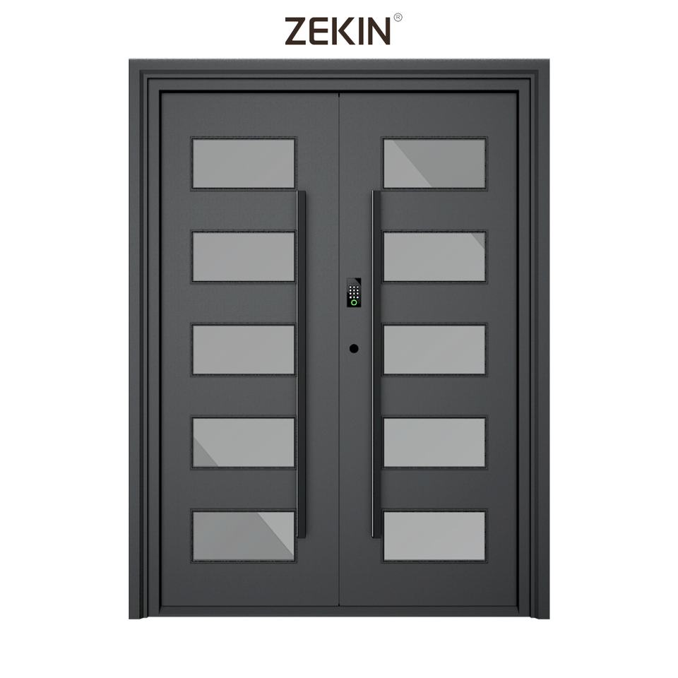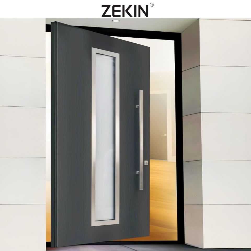ประตูเหล็กดีไซน์ทันสมัย ZEKIN DOOR รุ่น Modern Armor แบบครึ่งบาน สำหรับประตูทางเข้าบ้านพักอาศัย วิลล่า แบบเปิดหมุน ป้องกันการโจรกรรม