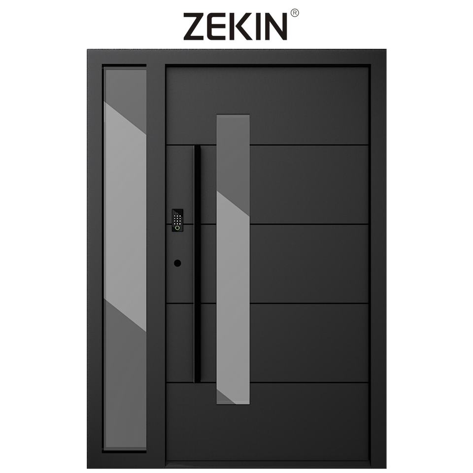 ประตูเหล็กดัดสไตล์มินิมอลทันสมัย ZEKIN ราคาแข่งขัน ประตูเหล็กบานเดี่ยวสำหรับภายนอกบ้าน ประตูบานสวิงสแตนเลสกระจกสำหรับวิลล่า
