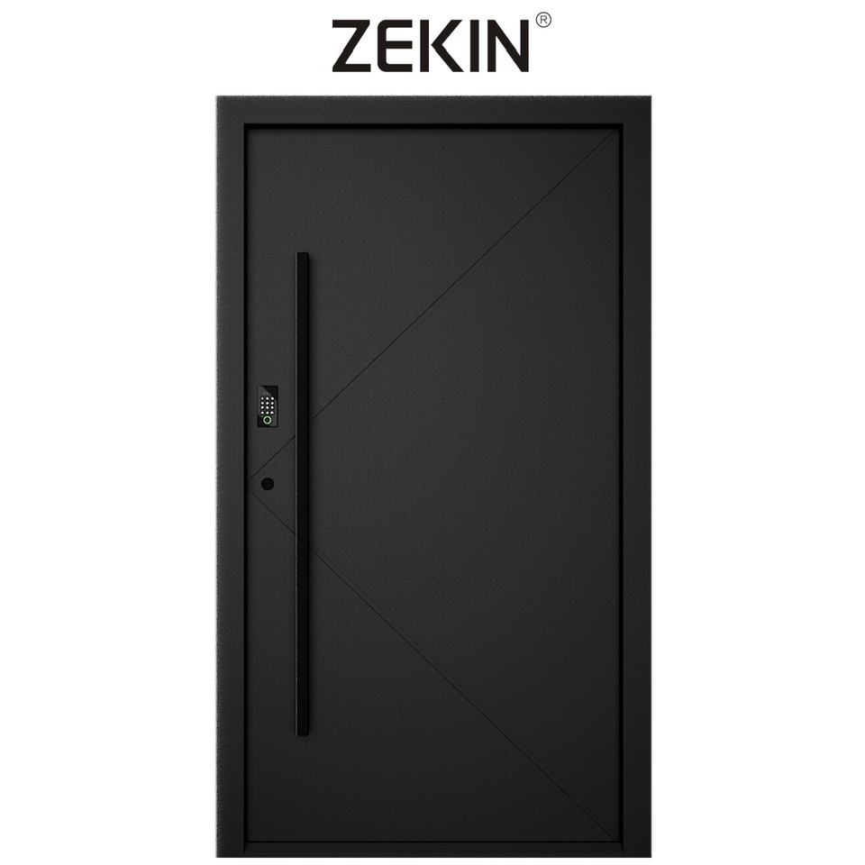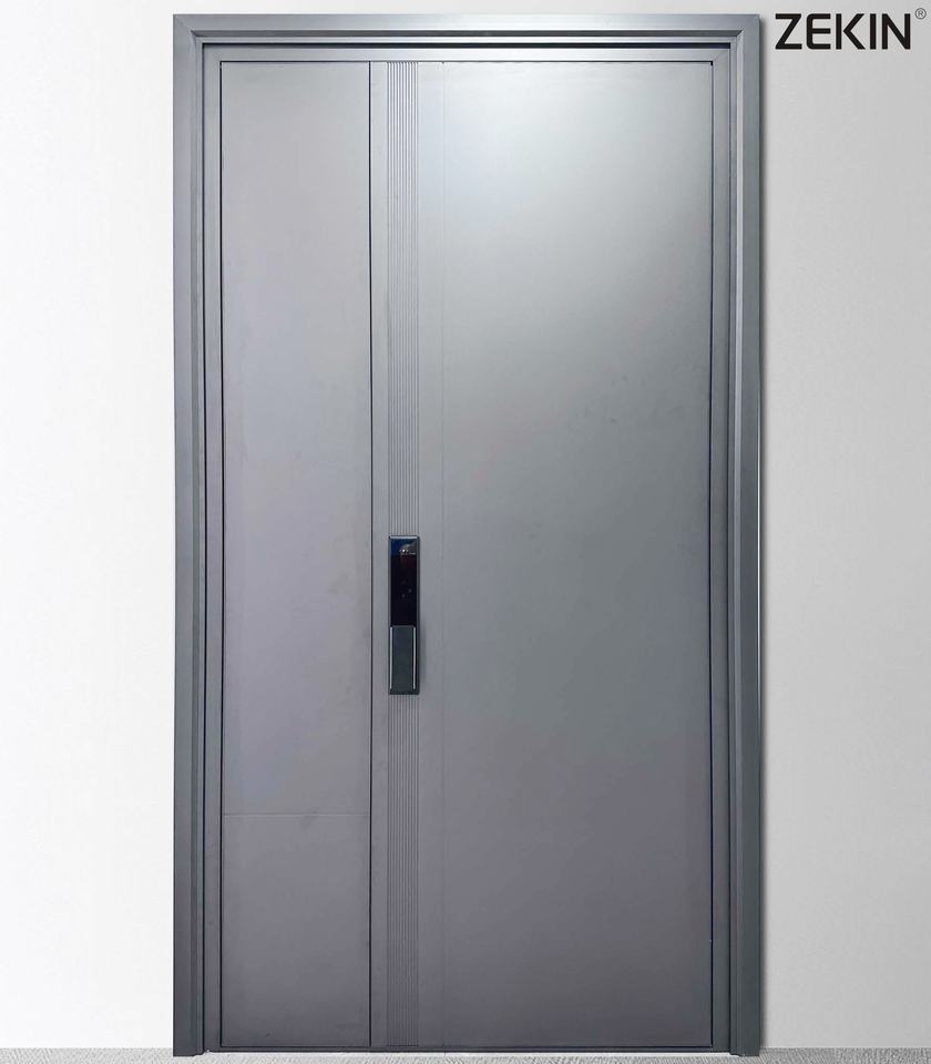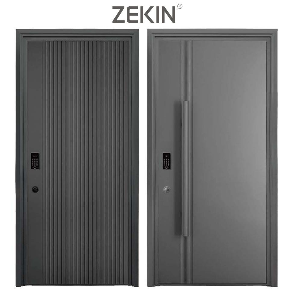 ประตูเหล็กหน้าบ้านลายไม้หรูหราทันสมัย ZEKIN ดีไซน์มินิมอล โครงอะลูมิเนียมอัลลอยด์ พร้อมคุณสมบัติความปลอดภัย ราคาประหยัด