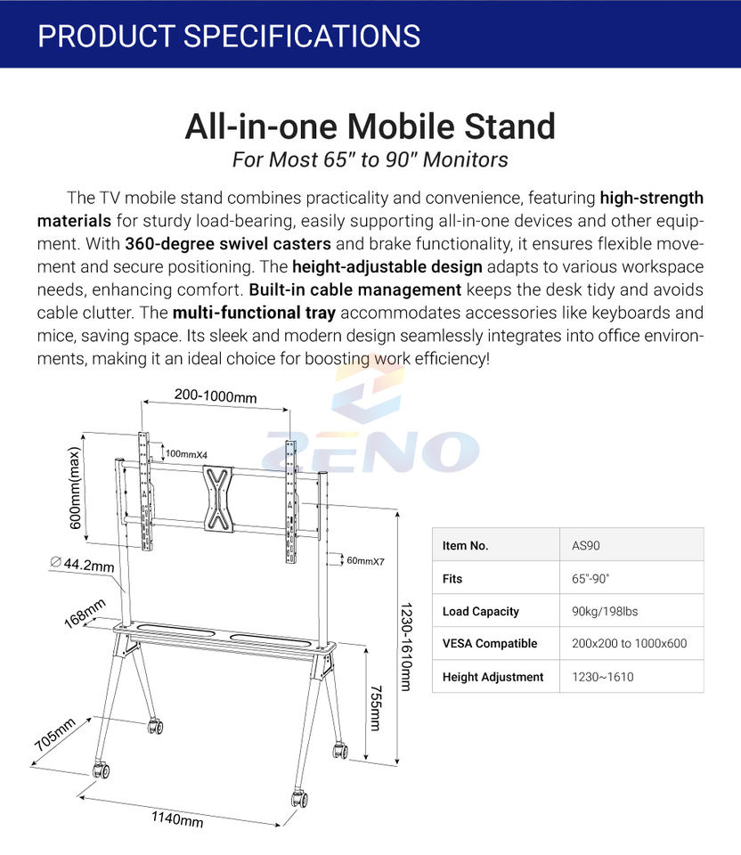 Zeno AS90แท่นวางทีวีแบบหมุนขนาด65 "- 90" แท่นวางทีวีพกพาได้แบบหมุนได้แท่นวางทีวีรถเข็น