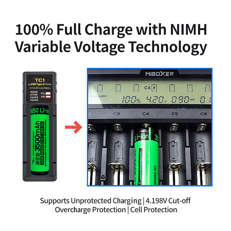 Zerobeam USB-C ที่ชาร์จแบตเตอรี่แบบพกพา1ช่องสำหรับ21700/18650/26650ชาร์จไฟได้ Li-ion /nimh สมาร์ทชาร์จไฟ LED