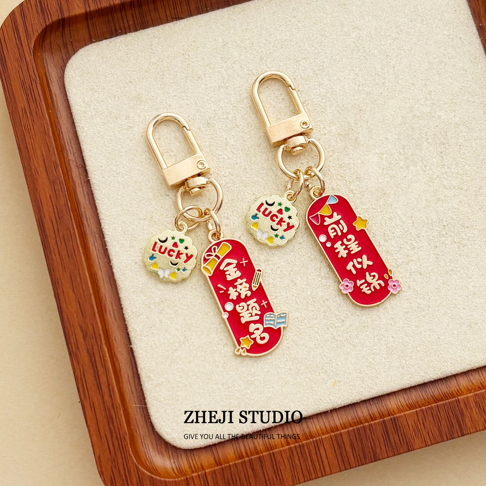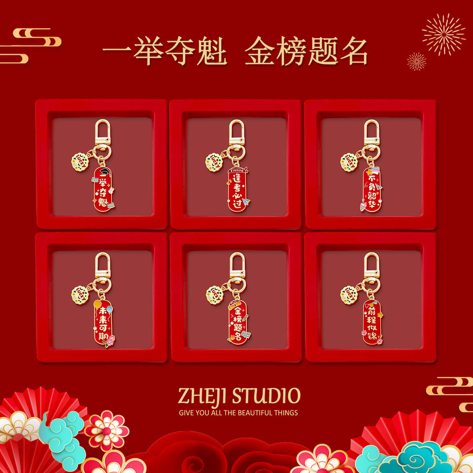 Zheji พวงกุญแจสตูดิโอโลหะสังกะสีอัลลอยพิมพ์ดิจิตอลของขวัญแบบพกพาสำหรับการสอบโชคและความสำเร็จ