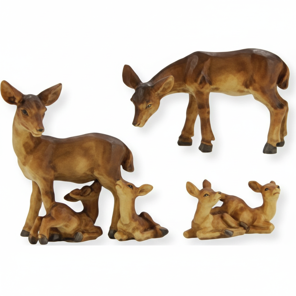 ZICOM ชุดฉากกำเนิดพระเยซู 3 ชิ้น ครอบครัวกวาง สูง 6.8 ซม. ใช้ร่วมกับฟิกเกอร์คริสต์มาสขนาด 8-12 ซม. ของเล่นเยอรมนี รุ่น 9069-T105-PB