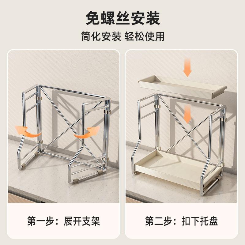 ชั้นวางเครื่องปรุงแบบพับได้ ZJ-2005-2SR สำหรับวางบนเคาน์เตอร์ครัว ชั้นวางหลายชั้นพร้อมที่หนีบโลหะสำหรับจัดเก็บ