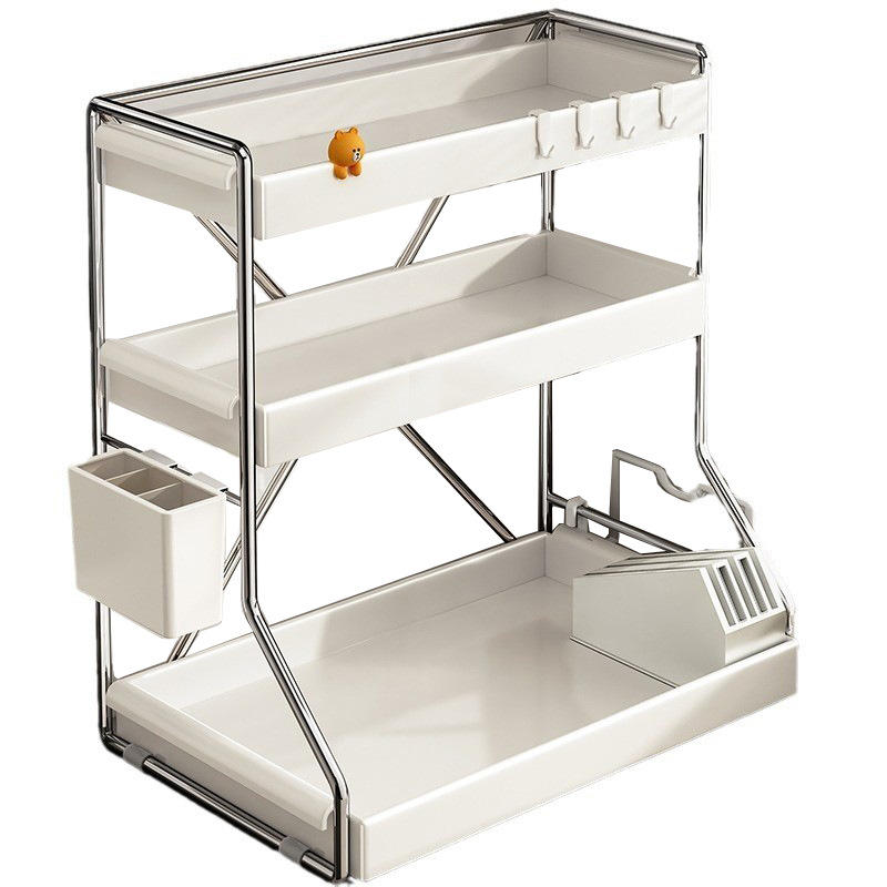 ชั้นวางของทรงสี่เหลี่ยมขนาดเล็ก (ชั้นวางหลัก 3 ชั้น) สีเงิน-ขาว