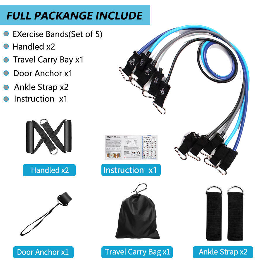 Zjfit ชุดยางยืดออกกำลังกาย150lbs ชุดยางยืดออกกำลัง11ชิ้นพร้อมที่จับ