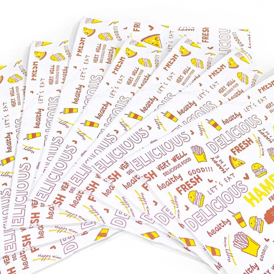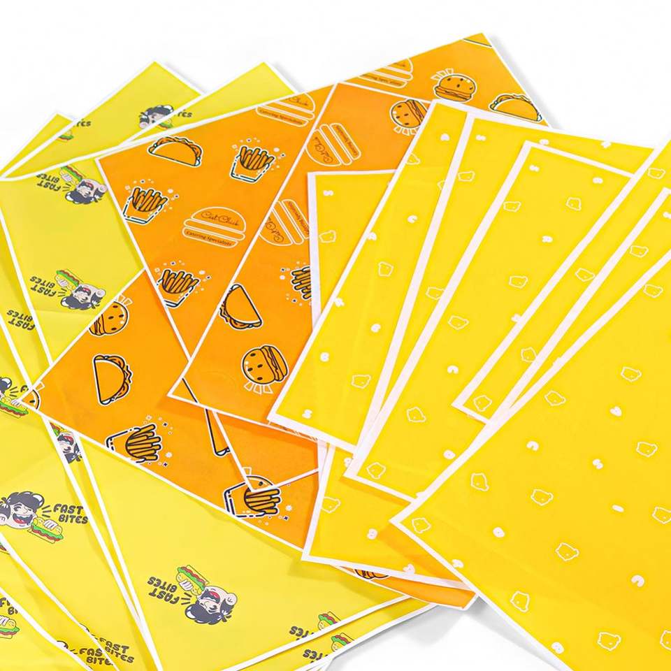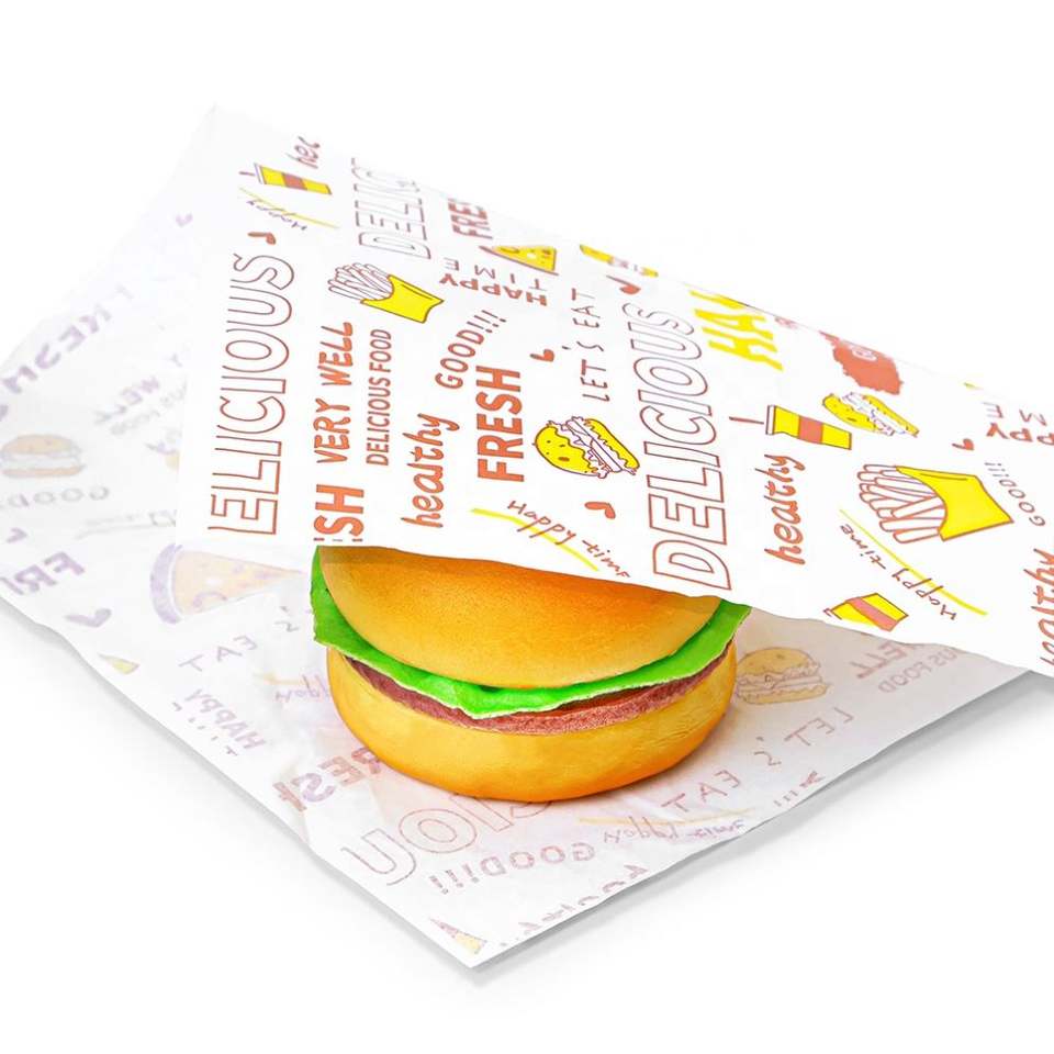 กระดาษไขกันน้ำมันสำหรับห่ออาหารแบบกำหนดเอง ZJPACK สำหรับเบอร์เกอร์และแซนวิช