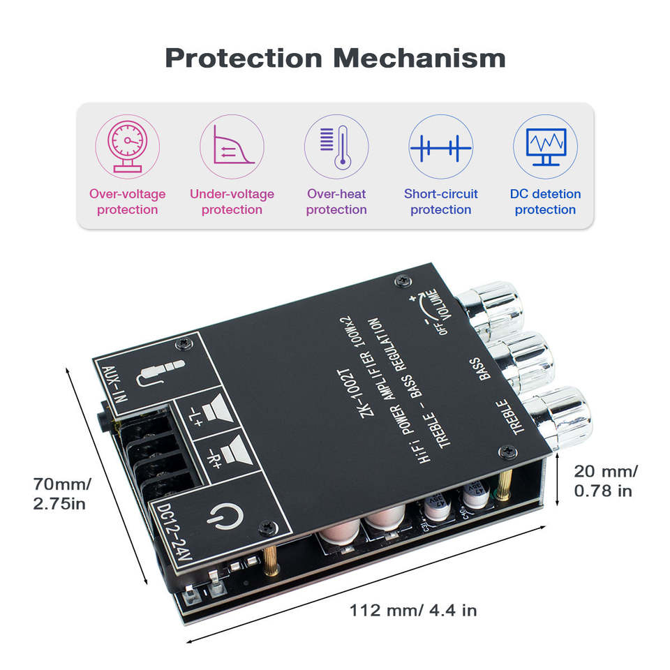 บอร์ดแอมพลิฟายเออร์ซับวูฟเฟอร์ ZK-1002T TPA3116D2 Bt 5.0 กำลังขับ 2 * 100W 2.0 แชนแนล บอร์ดแอมพลิฟายเออร์เสียงสเตอริโอพลังสูง แอมพลิฟายเออร์เบส