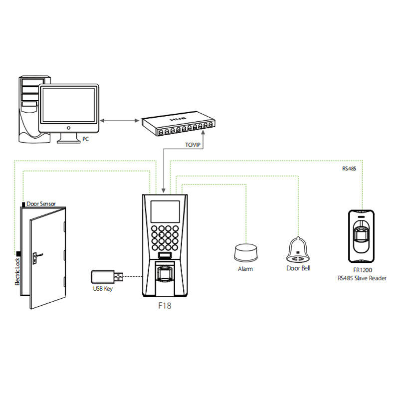 ZK F18ไบโอเมตริกซ์ลายนิ้วมือประตูระบบการควบคุมการเข้าถึงเวลาเครื่องเข้าร่วมประชุมกับซอฟต์แวร์ฟรีตัวเลือกเครื่องอ่านบัตร RFID
