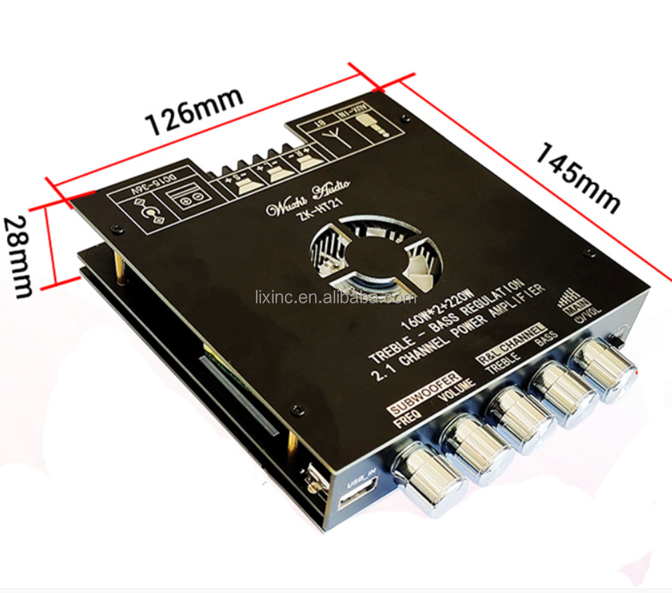 ZK-HT21 TDA7498E บอร์ดเพาเวอร์แอมป์เสียงสเตอริโอ USB พร้อมพัดลมระบายความร้อนในตัว รองรับบลูทูธ 5.0 ระบบเสียง 2.1 แชนแนล