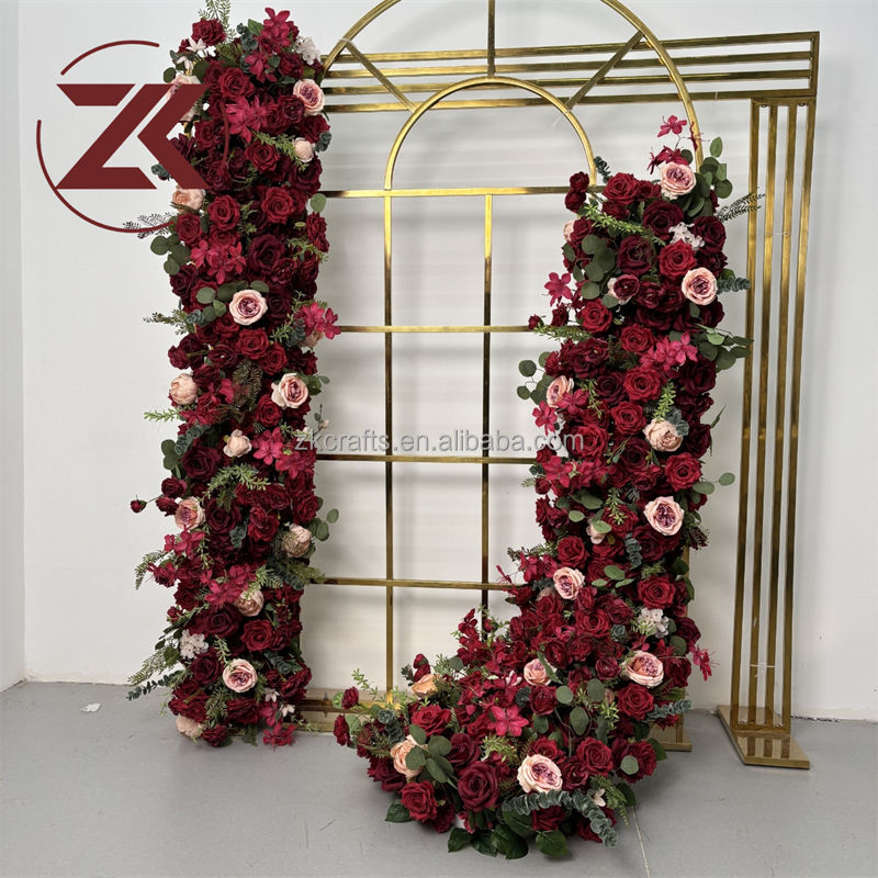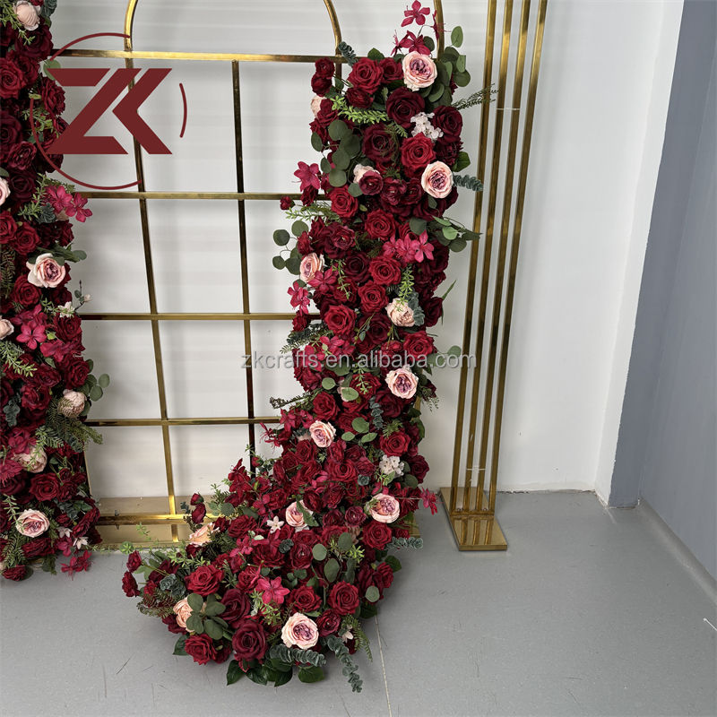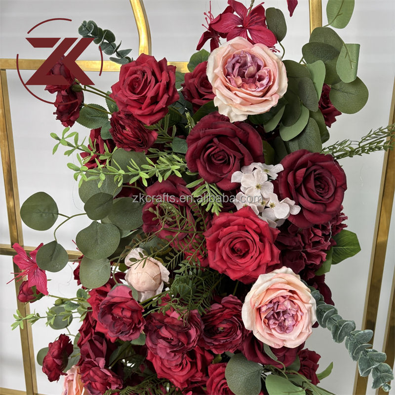 พรมดอกไม้ประดิษฐ์สีแดงคุณภาพสูง ZKAI สำหรับงานแต่งงาน ทางเดินดอกไม้ งานปาร์ตี้ ลายดอกกุหลาบ