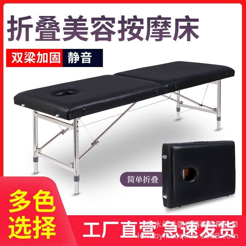 เตียงนวด ZL-4 โครงเหล็กสแตนเลส พับได้ ฟองน้ำความหนาแน่นปานกลาง สีดำ สำหรับใช้บำบัดที่บ้าน