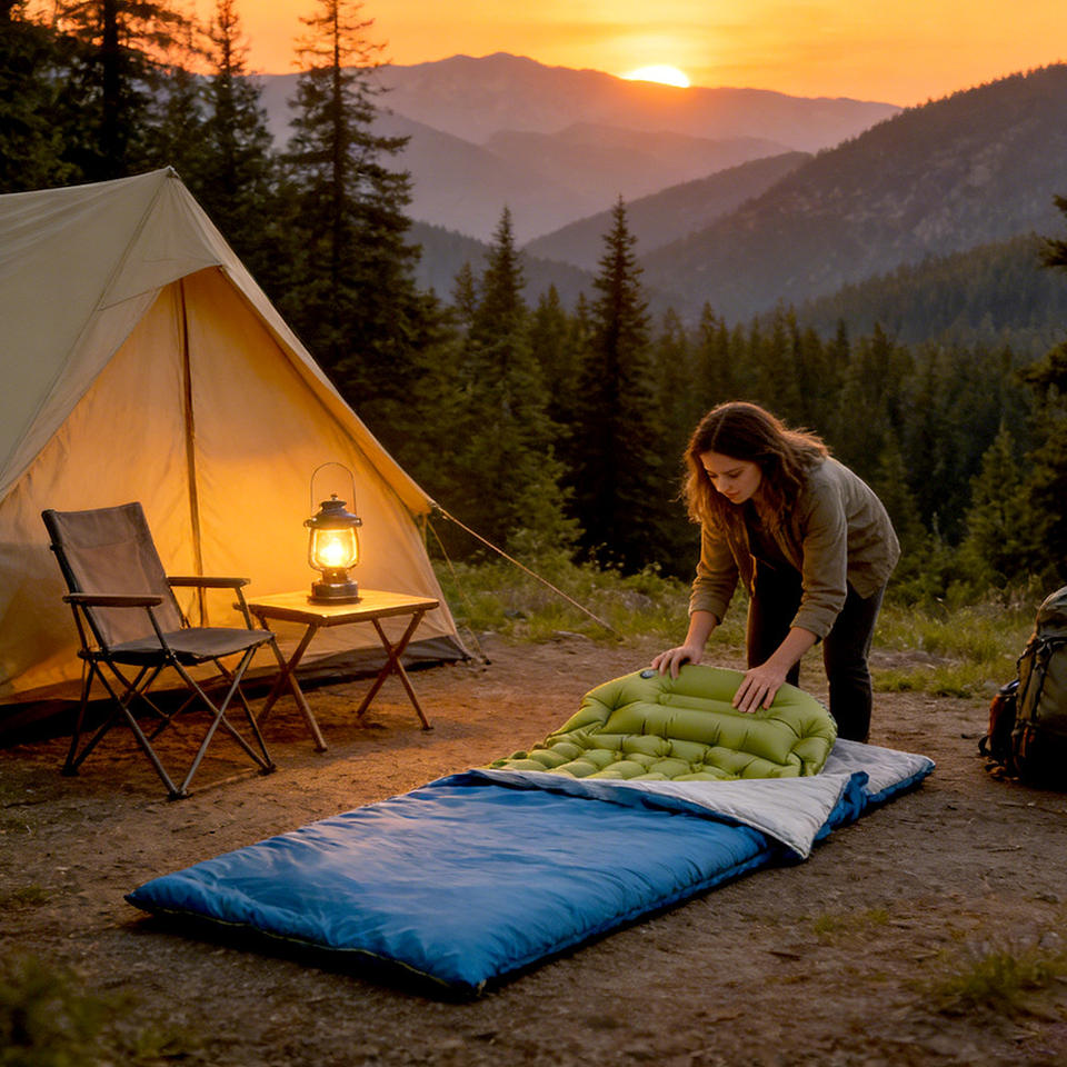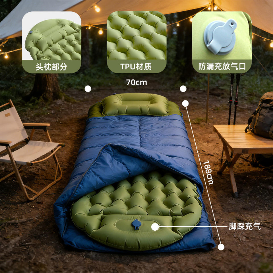 แผ่นรองนอนเป่าลม TPU แบบกำหนดเอง ZLD รูปทรงสี่เหลี่ยมผืนผ้า สีเขียวทหาร พร้อมปั๊มในตัว ที่นอนลมพกพาสำหรับใช้งานกลางแจ้ง