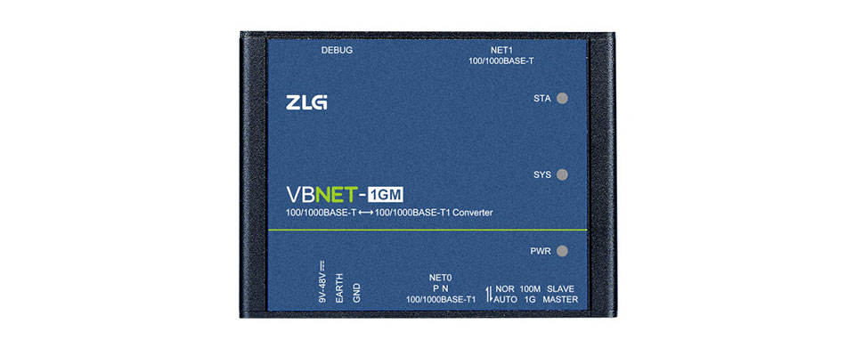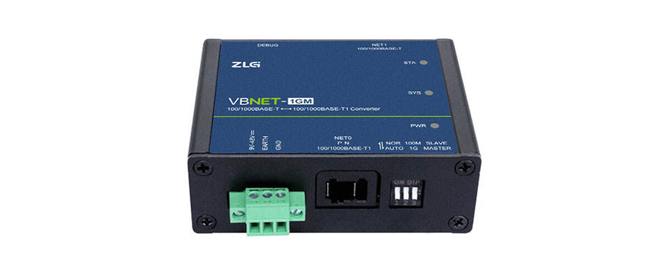 ZLG ตัวแปลงอีเทอร์เน็ต VBNET-1GM ยานยนต์100/1000BASE-T1เป็น100/1000BASE-TX TE อินเตอร์เฟซการเชื่อมต่อ